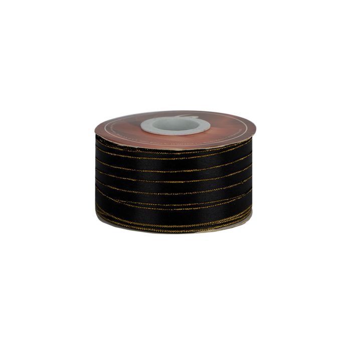 2 Rollos de Listón Satinado Con Orilla Metálica Oro-Negro #5 con 50 m c/u Ancho: 22 mm