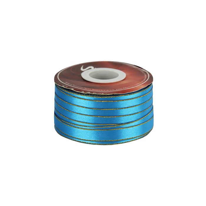 2 Rollos de Listón Satinado Con Orilla Metálica Oro-Turquesa #5 con 50 m c/u Ancho: 22 mm