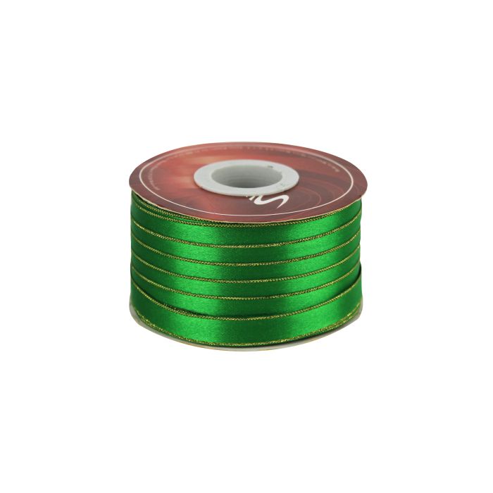 2 Rollos de Listón Satinado Con Orilla Metálica Oro-Verde Bandera #3 con 50 m c/u Ancho: 16 mm