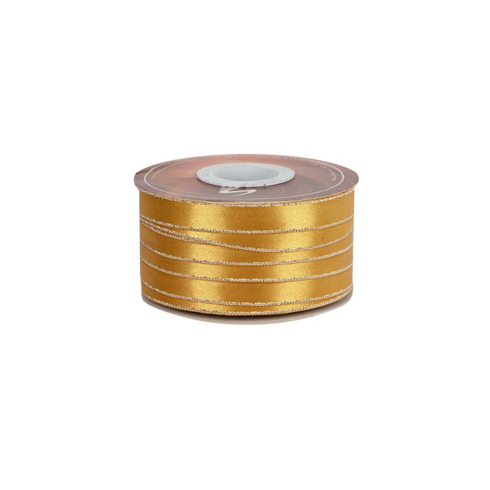 3 Rollos de Listón Satinado Con Orilla Metálica Plata-Dorado #0 con 50 m c/u Ancho: 4 mm