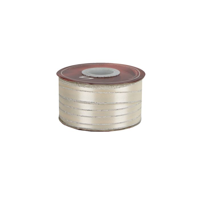 2 Rollos de Listón Satinado Con Orilla Metálica Plata-Ivory #9 con 50 m c/u Ancho: 38 mm