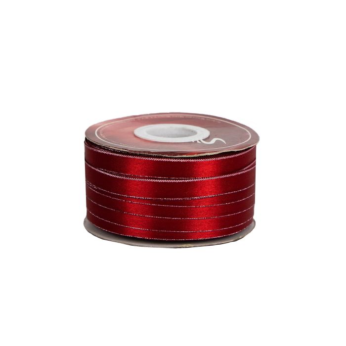 2 Rollos de Listón Satinado Con Orilla Metálica Plata-Rojo #9 con 50 m c/u Ancho: 38 mm