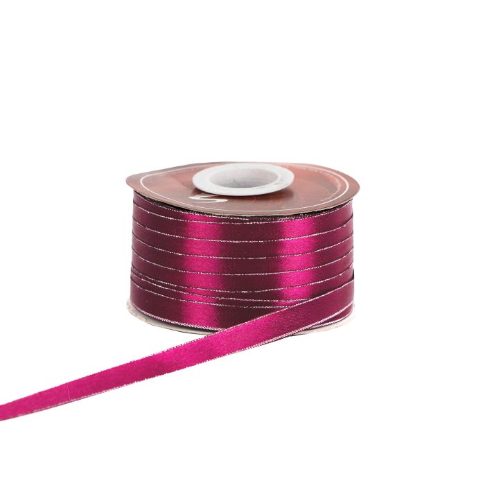 2 Rollos de Listón Satinado Con Orilla Metálica Plata-Vino #9 con 50 m c/u Ancho: 38 mm