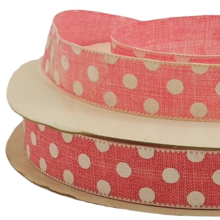 2 Rollos de Listón Tipo Yute Lunares Rosa con 50 mts c/u Ancho:20 mm