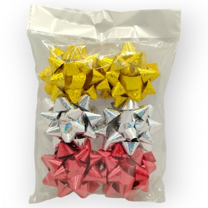 Moño para Regalo c/ adhesivo 3" Estrella Surtido Holográfico 1