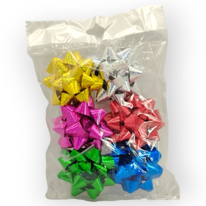 Moño para Regalo c/ adhesivo 3" Estrella Surtido Holográfico 2