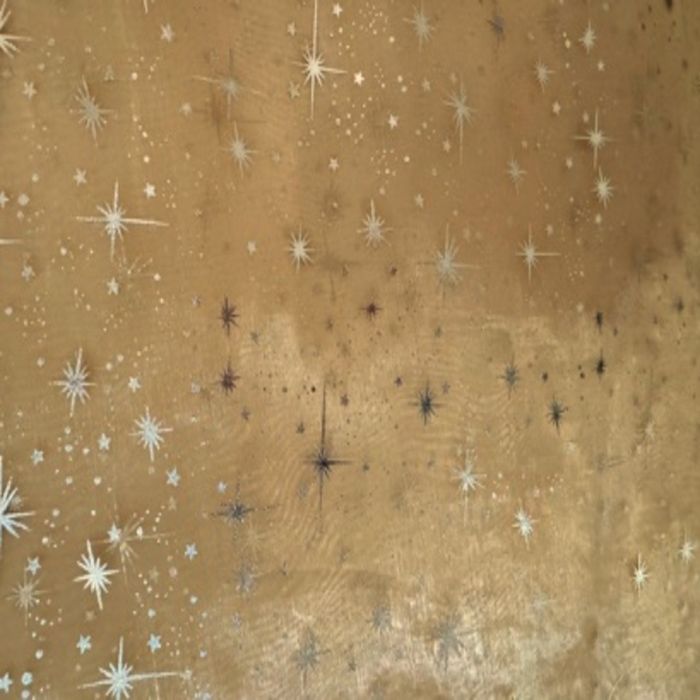 Paquete o Rollo de Organza Estrellas Liso Amarillo Oro.