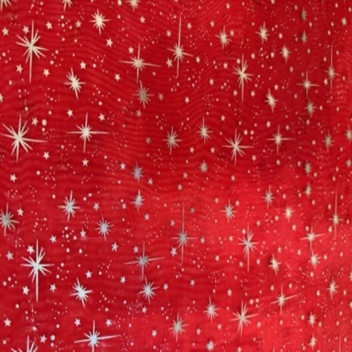 Paquete o Rollo de Organza Estrellas Liso Rojo.