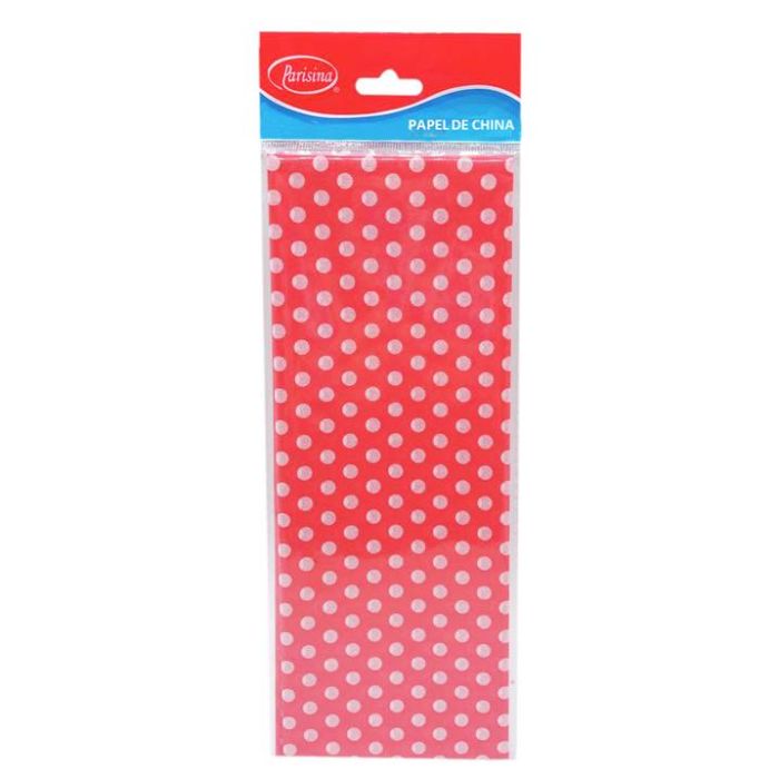 Caja con 25 Paquetes de Papel de China Lunares Parisina Rojos con 3 pzs c/u