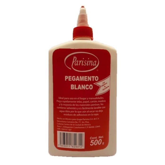 Pegamento Blanco, ideal para uso de hogar y manualidades. No contiene solventes, incoloro al secar y es fácilmente lavable con agua tibia, por lo que aún al secar no deja residuos de adhesivos en la ropa.