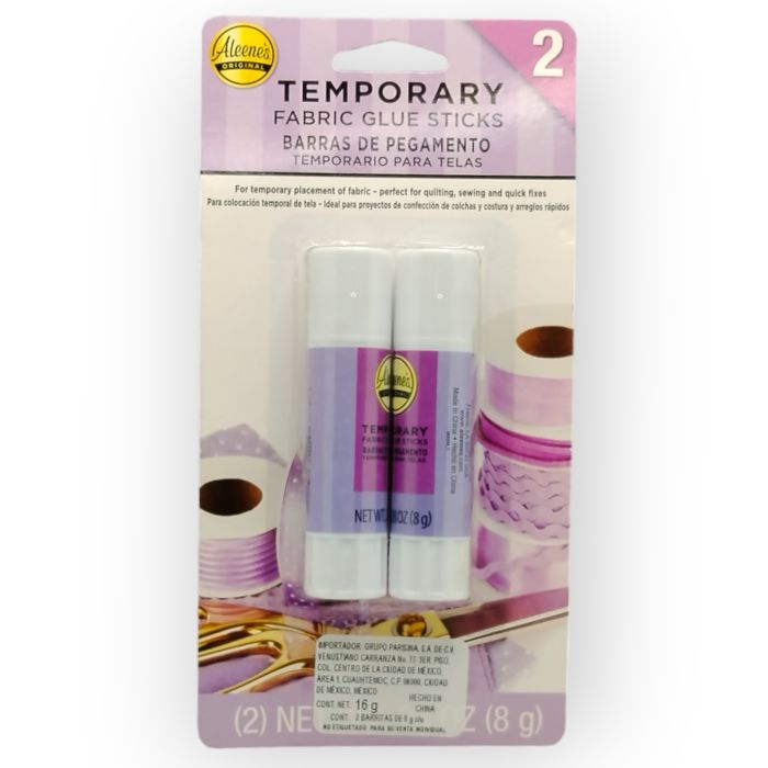 Las barras de pegamento temporales para telas de Aleene´s son una gran solución para arreglos rápidos de ropa, diseño y disposición de proyectos de quilting y otros proyectos de costura. Esta barra de pegamento de fórmula transparente se aplica con facilidad y no deja residuos en las telas.