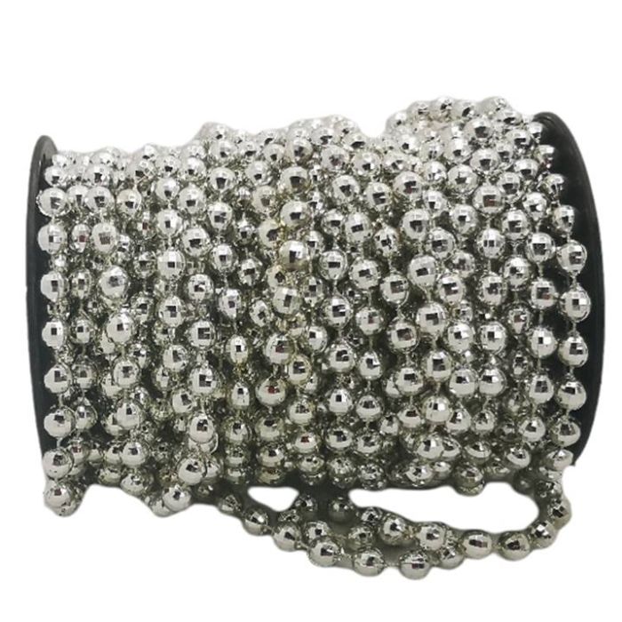 Cadena de perlas hechas de plástico. Duradera y resistente, superficie lisa y brillante. Las perlas están fusionadas en un fuerte hilo de nylon que se puede cortar fácilmente con tijeras a la longitud deseada sin que se caigan, tienen una forma consistente y uniforme.