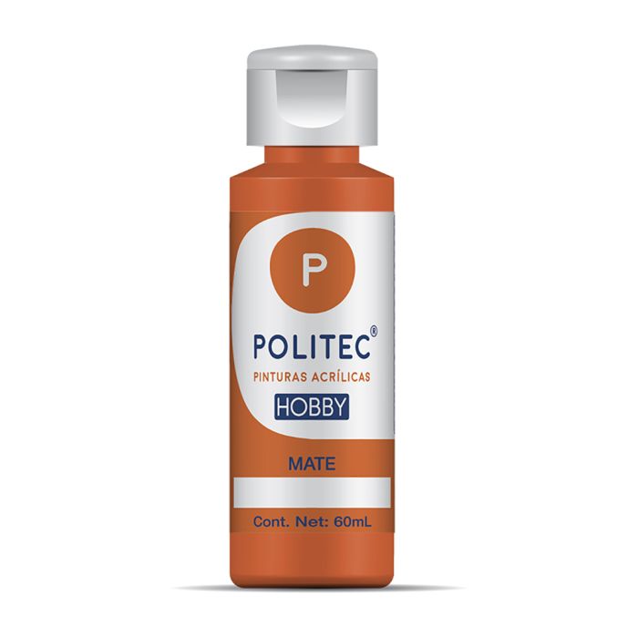 Caja con 12 Botellas con tapa dosificadora de Pintura Acrílica Politec Naranja No.1208 de 120 ml c/u.