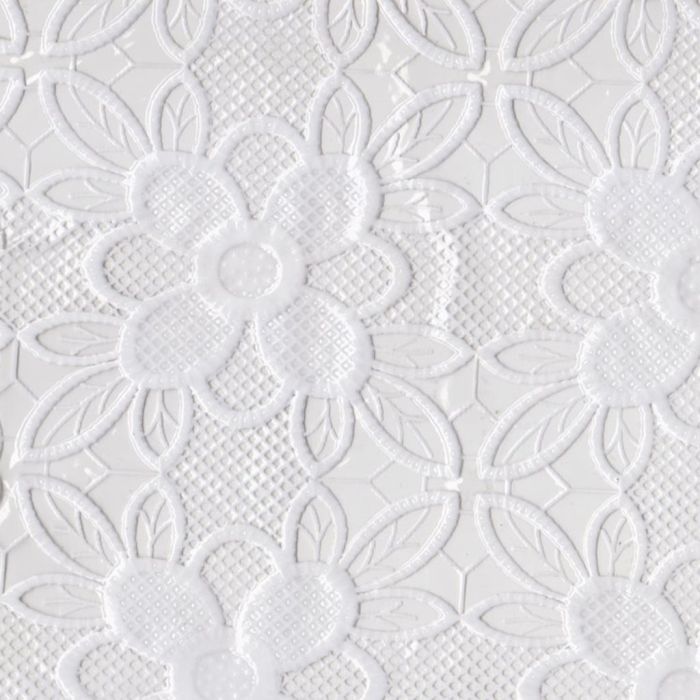 Paquete o Rollo de Plástico Mantel Encaje PVC Uva Blanco.