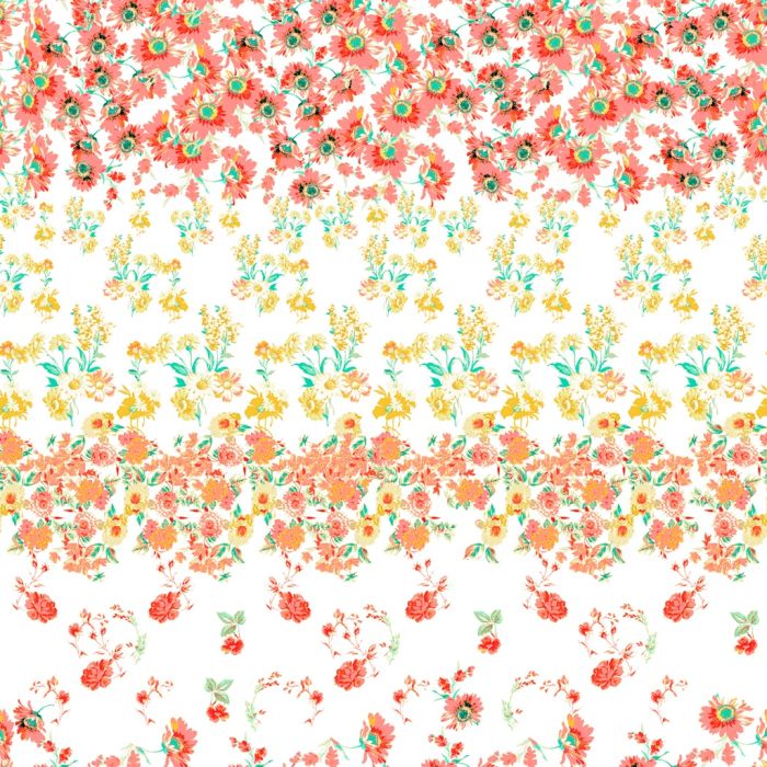 | Description | Paquete o Rollo de Rayón Chalis Flores Minis Naranja. |