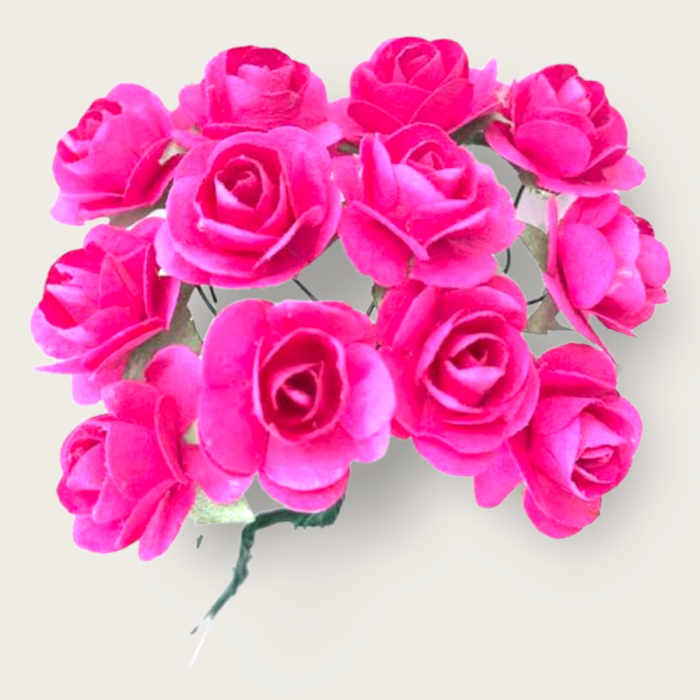 10 Paquetes con 6 ramos c/u de Rosa de Papel Chica Fiusha Mod.LMA1195 Tamaño: 2 cm de diámetro aprox