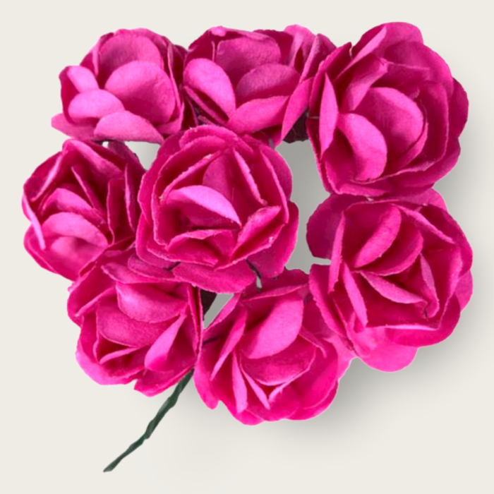 10 Paquetes con 6 ramos c/u de Rosa de Papel Mediana Fiusha Mod.LMA1127 Tamaño: 2.5 cm de diámetro aprox