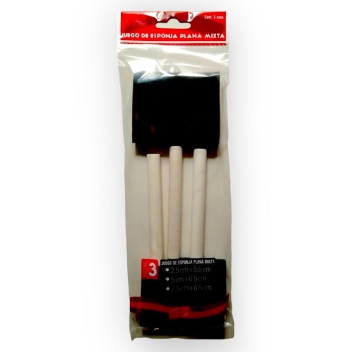 | Description | Juego de brocha esponja plana mixta Brocha de esponja con forma rectangular, base plana y mango de madera. Este tipo de pincel, brocha o paletina de esponja es especial para pintar superficies con acabado más limpio y uniforme, ya que no dejará restos indeseados de cerdas como ocurre con las brochas tradicionales. Ideal para amplias superficies y todo tipo de pinturas. Este tipo de brocha debera lavarse con agua y jabon suave despues de cada uso, ya que si la pintura se seca en la esponja esta se ira endureciendo. Secarlos sobre una toalla, evitar secarlos boca arriba en un recipiente porque se dañaría el mango, y boca abajo dañaría la orilla de la esponja.