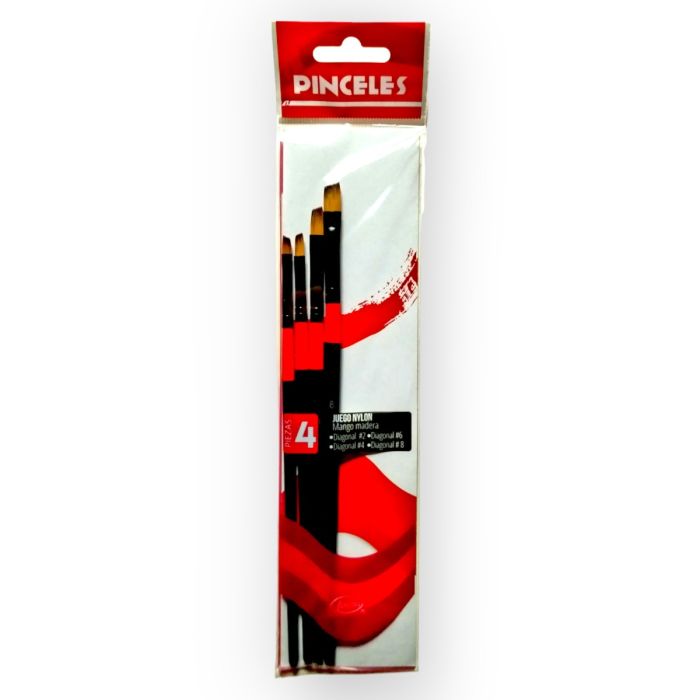 | Description | Juego nylon diagonal Hechos de nylon ofrecen características que intentan imitar al pelo natural, son de color blanco o teñidos de naranja para asemejar el pelo natural. Perfecto para acrílico, acuarela y témpera. Su textura suave ayuda a que la aplicación de pintura sea mas uniforme. Lavarlos al menos una vez al mes, utilizar para ello jabón neutro o champú muy suave. Frotar suavemente en forma circular sobre la palma de la mano, luego eliminar el jabón sumergiendo la brocha o pichel nuevamente en agua. Secarlos sobre una toalla, evitar secarlos boca arriba en un recipiente porque se dañaría el mango, y boca abajo dañaría el pelo.