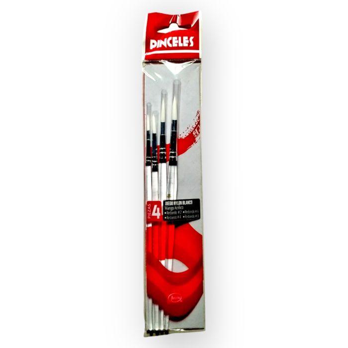 Caja con 24 Sets de Pinceles con mango de acrilico de 4 piezas c/u. Cada Set incluye: #2, #4, #6 y #8