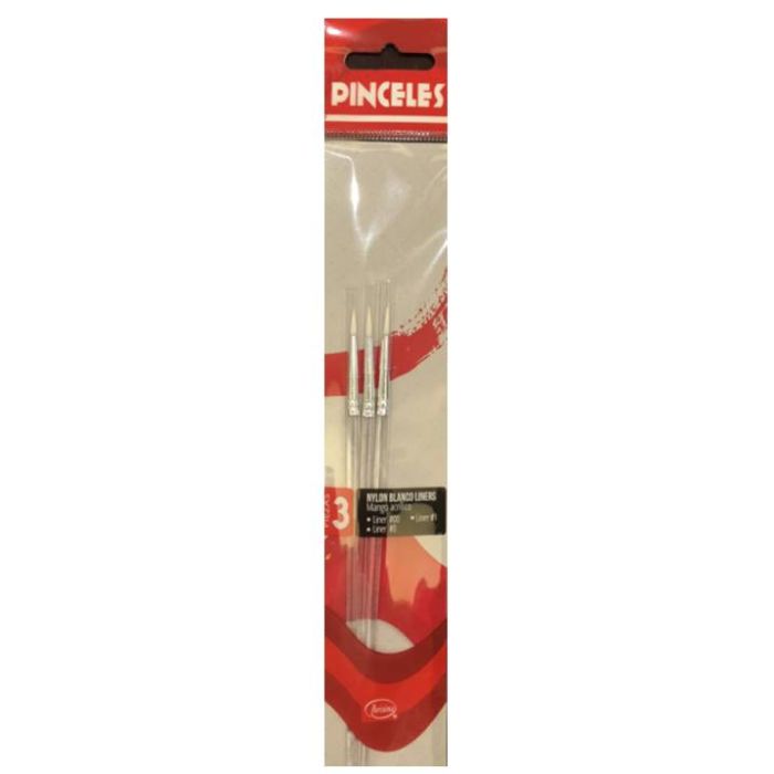 | Description | Juego de liners nylon blanco Hechos de nylon ofrecen características que intentan imitar al pelo natural, son de color blanco o teñidos de naranja para asemejar el pelo natural. Perfecto para acrílico, acuarela y témpera. Su textura suave ayuda a que la aplicación de pintura sea mas uniforme. Lavarlos al menos una vez al mes, utilizar para ello jabón neutro o champú muy suave. Frotar suavemente en forma circular sobre la palma de la mano, luego eliminar el jabón sumergiendo la brocha o pichel nuevamente en agua. Secarlos sobre una toalla, evitar secarlos boca arriba en un recipiente porque se dañaría el mango, y boca abajo dañaría el pelo.