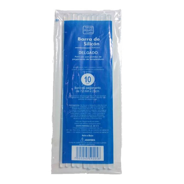 Caja con 200 paquetes de 10 pzas c/u de Silicón en Barra Delgado de 7.2 mm x 23 cm