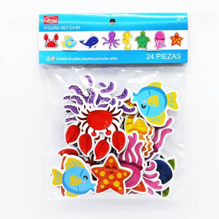 Caja con 12 Paquetes de Stickers de foami surtido Animales Marinos 24 pzs c/u