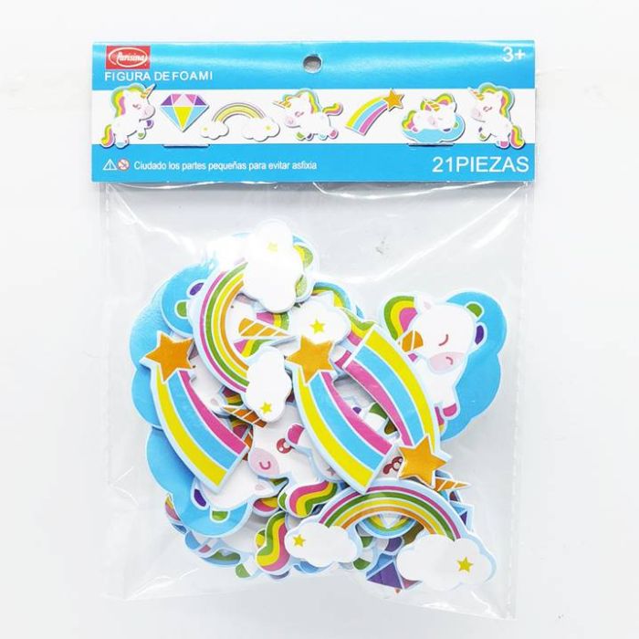 Caja con 12 Paquetes de Stickers de foami surtido Unicornios 24 pzs c/u