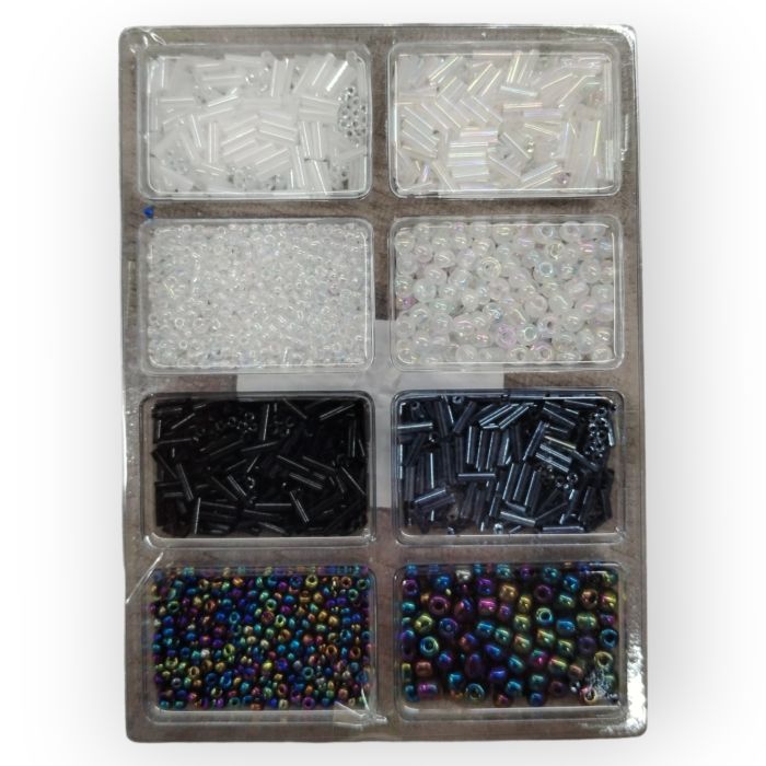 Descripción / Surtido de Cuentas Chaquira - Chaquiron - Popotillo Blanco-Negro
