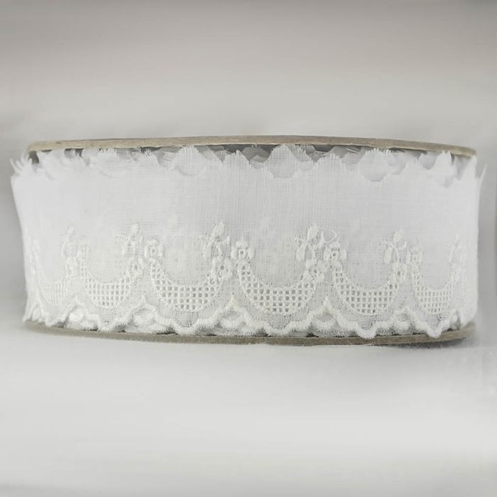 Rollo con 29.8 metros de Tira Bordada Organdí Blanco Mod.18561