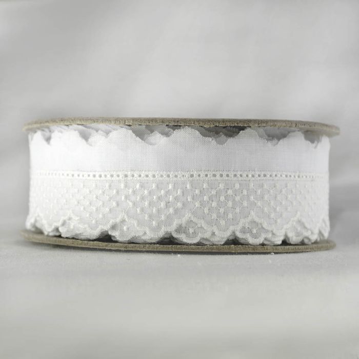 2 Rollos con 29.8 metros c/u de Tira Bordada Organdí Blanco Mod.18563