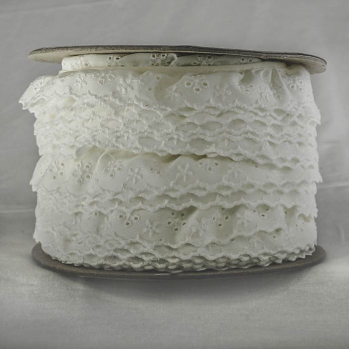 | Description | Esta es una tira de popelina de poliéster y algodón, con delicados bordados y plisada. Adorno para todo tipo ropa, en especial vestidos de novias, comunión, quince años. Además de calzado, lencería, trajes regionales, bolsas, manualidades, cortinas, bambinetos, toallas, fundas, decoraciones de navidad o día de muertos, vestidos para niño Dios, etc. |