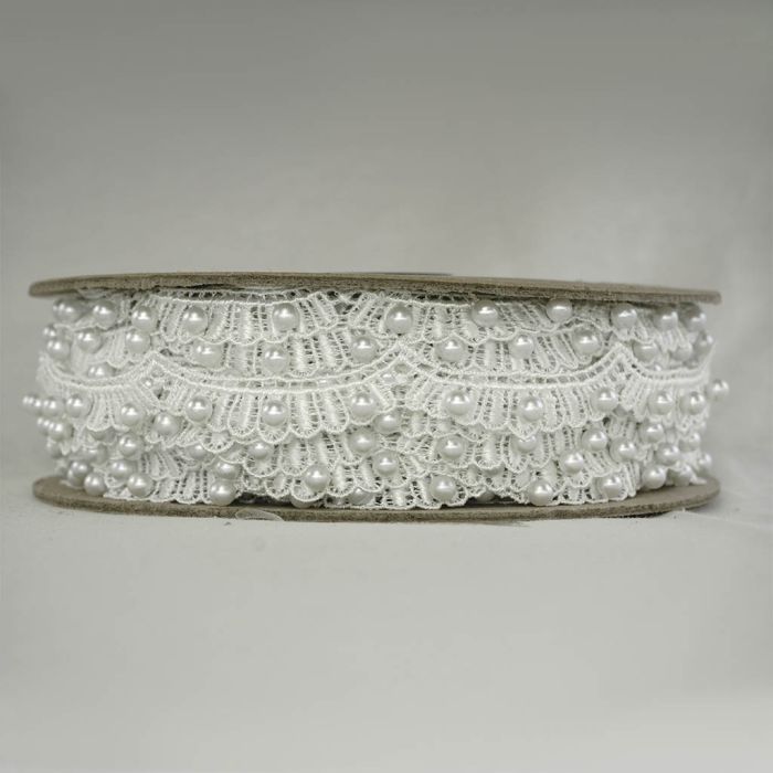 Rollo con 29.8 metros de Tira de Guipiure Blanco con Perla #1