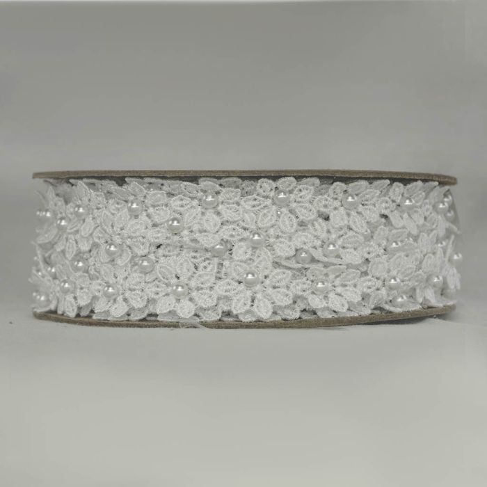 Rollo con 29.8 metros de Tira de Guipiure Blanco con Perla #2